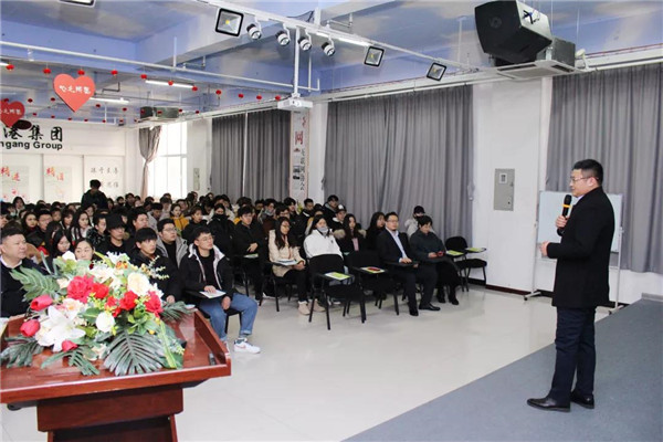 乾港集團(tuán)美博士環(huán)保總經(jīng)理常凱???,為在座的師生們解讀了大綠色環(huán)保家居、室內(nèi)污染物治理技術(shù)、方式方法及產(chǎn)品介紹等相關(guān)空凈治理知識(shí);秦皇島新型材料科技有限公司總經(jīng)理李勇劍李總則為在座師生帶來了綠色材料研發(fā)及生產(chǎn)使用工藝等內(nèi)墻環(huán)保壁材方面的知識(shí)。